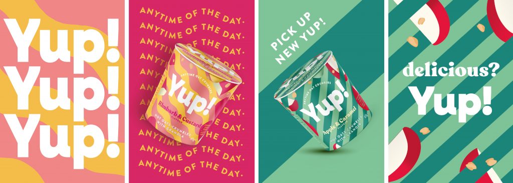“Visually, we needed to shift away from the breakfast image of a static bowl of oats. Sweet and fun, Yup! is more about looking good on-the-go rather than the kitchen table.” Alex Durbridge – Creative Leader at F&F.
