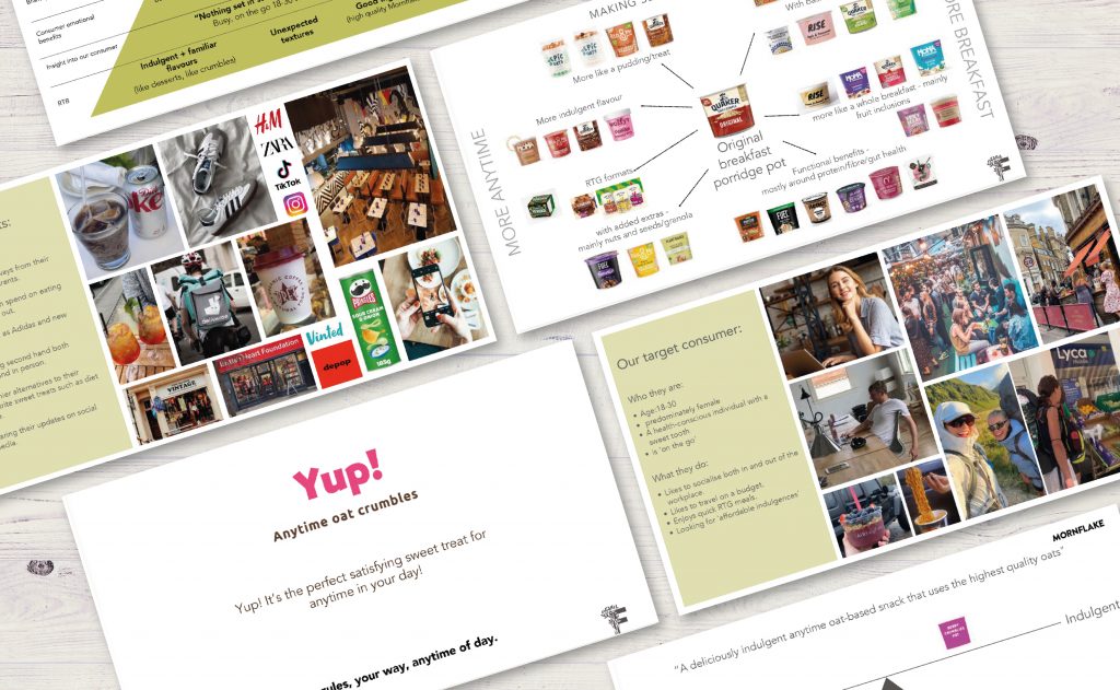 Mornflake approached us with their new sweet, on-the-go oat-pot range. We started by exploring the existing porridge-pot market, and through our research uncovered that younger consumers are seeking healthier dessert alternatives – without fixed snacking time preferences.